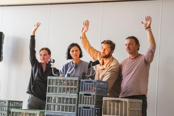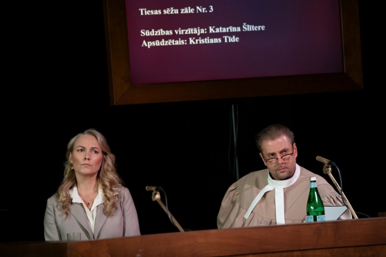 Dailes teātrī notikusi pirmizrāde tiesas procesam “Viņš teica, viņa teica”