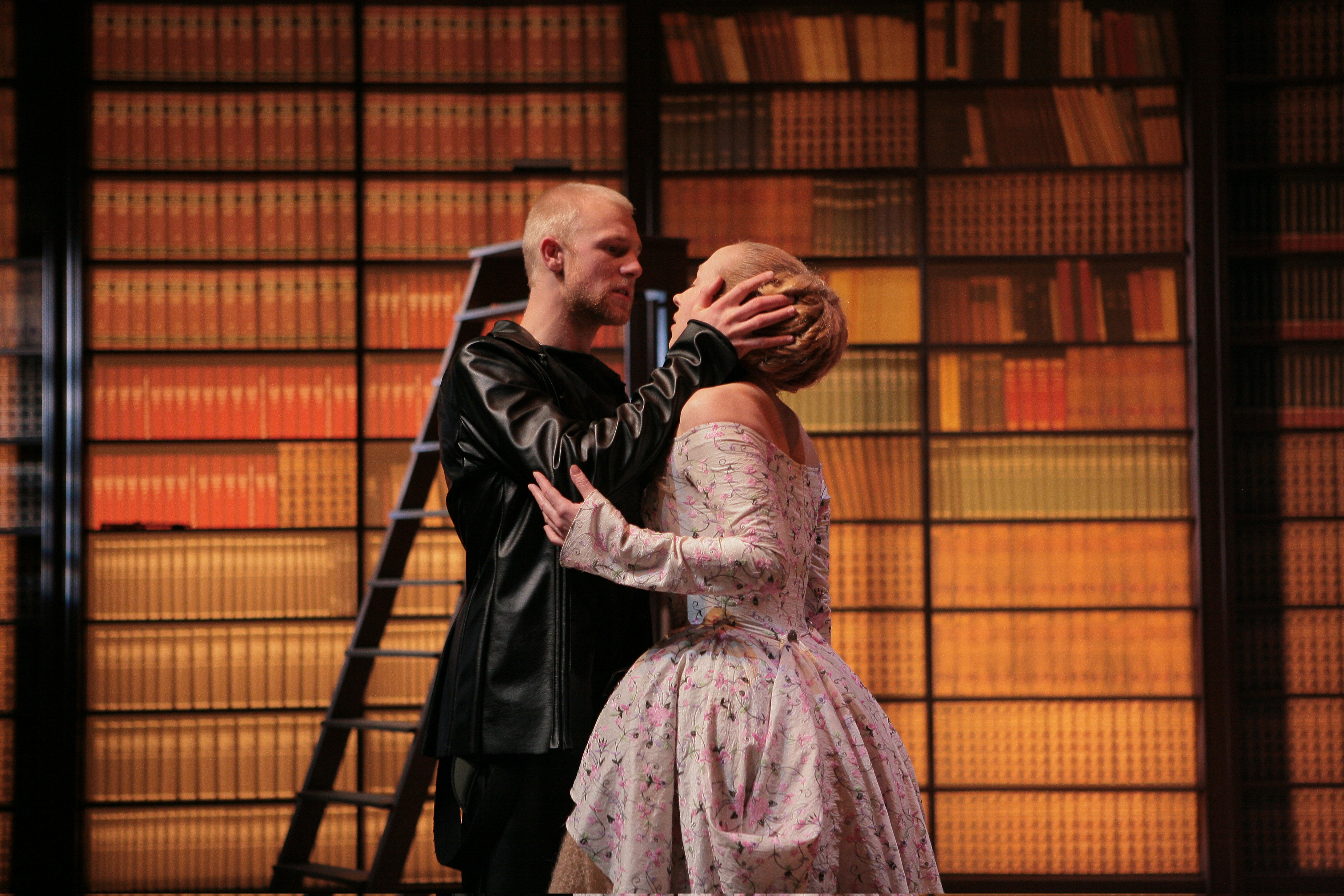 Ainā paredzēts, ka Ievas Puķes Ofēlija sēž uz bibliotēkas kāpnītēm.