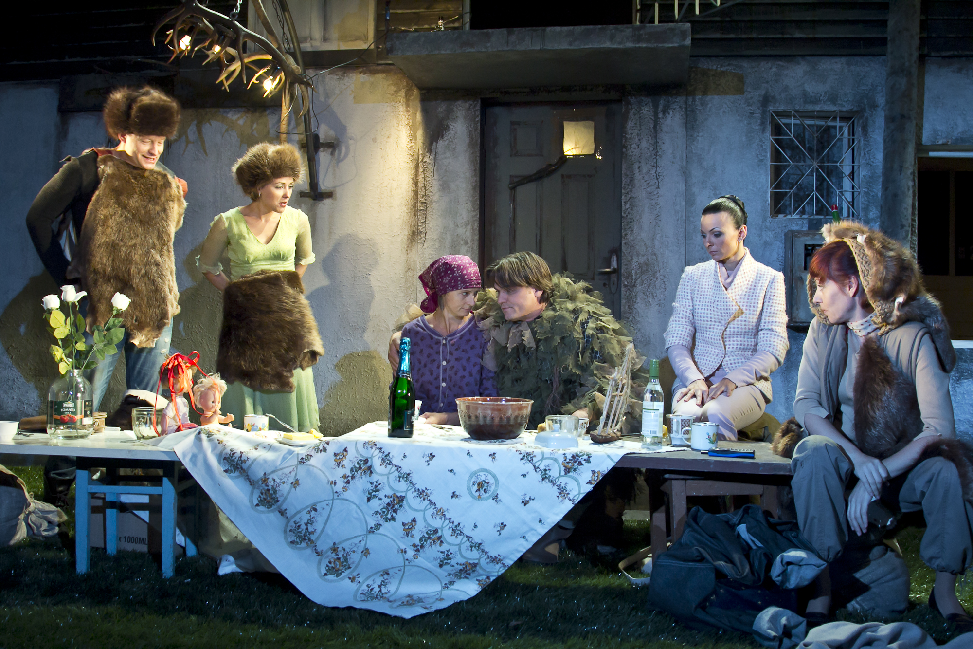 Valoda un tās lietojums, kas ir nacionālās identitātes pamats, Laura Gundara izrādē ieguvusi grotesku dekonstrukciju – izrādes personāži apzināti nedzird un neklausās viens otrā.