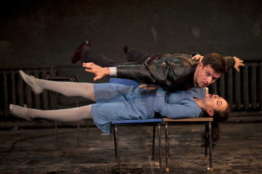 Izrādē lielākoties tēlota fiziska kaislība, kas cilvēkā atmodina dzīvnieciskos instinktus, liekot pašam teju vai kļūt par suņu riesta upuri. Stāstā „Taņa” Viļa Daudziņa Petruškam nav nekādu izredžu – katru reizi, kad viņš redz Baibas Brokas Taņu – vienalga, guļošu, stāvošu, sēdošu vai pieliekušos, viņš burtiski nespēj no viņas atrauties. Šajā epizodē fiziskā darbība – abu trīšanās vienam gar otru vai, precīzāk, vienam uz otra – monotoni atkārtojas neskaitāmas reizes, iegūstot komisku noskaņu. Taču būtībā izspēlētā epizode apliecina mīlestības absolūti stihisko varu pār cilvēku – tā pārņem pēkšņi, atņemot spēju kontrolēt ne tikai prātu, bet pat ķermeni. Tā ir kā dionīsiska stihija, kas cilvēkam liek zaudēt savu individualitāti un pakļauties augstākam metafiziskam spēkam, kļūstot par rituāla ārprāta dalībnieku. Brīžos, kad Viļa Daudziņa spēlētais varonis, visbiežāk Taņas tērgāšanas dēļ, uz mirkli „atmostas” no dzīvnieciskās stihijas eiforiskuma, viņa sejā parādās apmulsuma pilna izteiksme – šķiet, varonis pats nesaprot, kas ar viņu notiek un kas ir šis nepārvaramais spēks, kas viņu pārņēmis. Tā kādā mīlas eiforijas brīdī abi viens no otra atrauj un izpleš rokas un kājas, sastingdami simboliskā lidojumā, it kā cenzdamies pārvarēt abu mīlestības fiziskumu un pacelt to garīgā līmenī, taču Viļa Daudziņa varonis to līdz galam nespēj izdarīt. Vienīgā izeja – aizbraukt uz neatgriešanos.