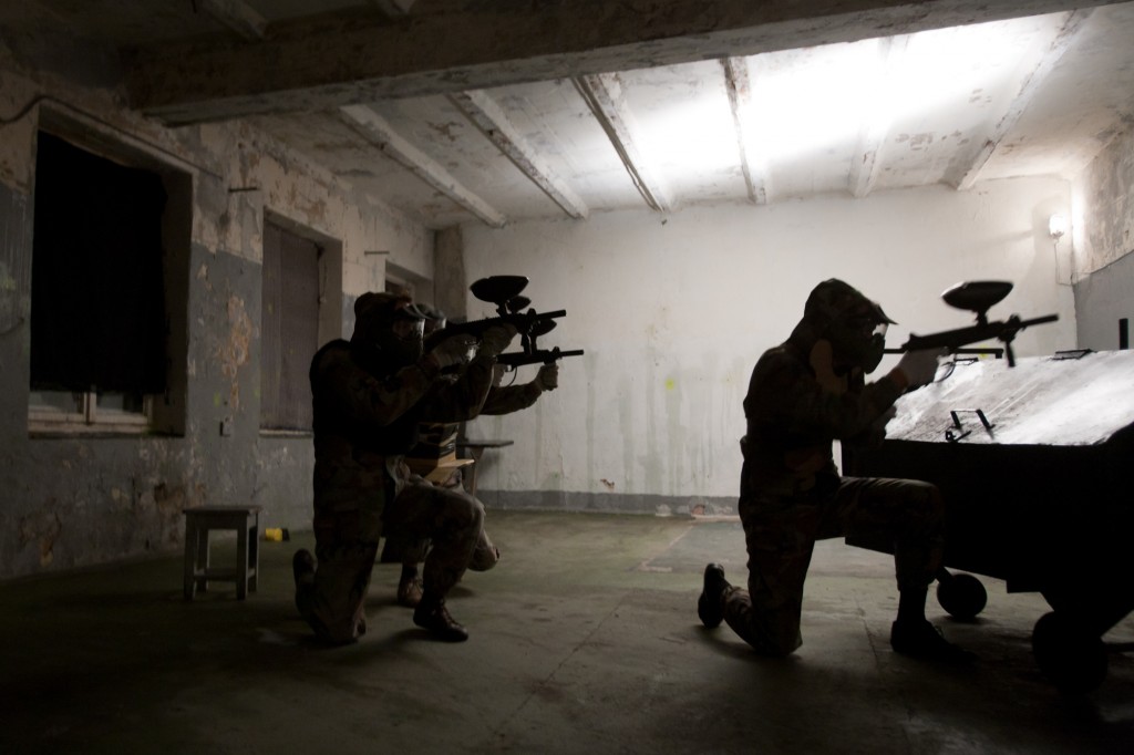 Pēkšņi, apmēram pēc stundas, it kā aktieriem būtu apnicis spēlēt, A.Apinis no skatuves nokāpj skatītāju telpā un ar rokas mājienu no publikas rindām izsauc astoņus skatītājus – vīriešus, pastiprinot savu aicinājumu ar vārdiem: „Nāciet! Jūs man esat vajadzīgi.” (Kas notiek, ja tik daudz vīriešu nav ieradušies, ienāca prātā.) Astoņi brīvprātīgie tiek aizvesti uz aizskatuves telpu, kā vēlāk redzams, tur viņi ieģērbti armijas aizsargkrāsas raibajos tērpos, ķiverēs ar aizsargbrillēm, katram rokā iedots ložmetējam līdzīgs (rotaļu?) šaujamais. Kamēr turpinās šī ne pārāk zibenīgā norise, minūtes 6-7 sēžam un gaidām, vai un kas notiks: mums nekas nav paskaidrots, bet darbība uz skatuves izbeigusies. Pēkšņi uz palaga-ekrāna skatuves dibenplānā kļūst redzami videokadri, kuros dīvaini saģērbtie astoņi skatītāji (jāpieņem, ka tie ir viņi, jo zem kaskām jau tos nevar atpazīt) diletantiski imitē šaušanu, mērķēdami cits uz citu. Tas raisa neērtības sajūtu un ir drusku smieklīgi. Tobrīd jau mēs vēl nezinām, ka astoņi rekrūši, krietni izšaudījušies, līdzīgi ievainotajiem iztenterēs uz skatuves un neveikli pakritīs nāves miegā - kur kurais. (Tas, protams, ir vēl smieklīgāk.) Viņi tik pārliecinoši ir miruši, ka dažs nav gatavs atmosties, pat atskanot obligātajai skatītāju nodevai - aplausiem. Teātra radošajai grupai, kā varam lasīt interneta mājaslapā, šķiet, ka aprakstītās norises „katru izrādi pārvērš unikālā, otrreiz neatkārtojamā hepeningā”. Man tā nelikās. Bet kādam četrdesmitgadīgam vīrietim, kurš bija piedalījies „šaušanā”, iespējams, tā likās. Režisora iniciētā pēcizrādes sarunā viņš izteica cerību, ka varbūt šovakar būs izārstējies no kādas bērnības traumas, kas viņam allaž vasarās liek gribēt šaut uz suņiem...