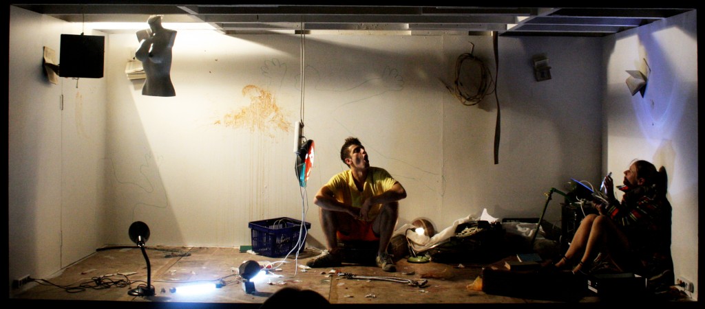 Rekvizītu kalni epizodi pēc epizodes liek brīnīties, kā to visu iespējams apvienot un pakārtot izrādes saturam. Viss, kas ir pa rokai, pārtop par visu, kas nepieciešams, lai dzīvotu pieaugušo dzīvi. Telpas un izmantoto rekvizītu mijiedarbība īpaši izceļas mirklī, kad tiek izspēlēta ainiņa par tēmu „Remonts”. Tobrīd atveras durvis (priekškara vietā), pa kurām lieliem soļiem sarežģītu sejas izteiksmi iesoļo ģimenes galva Armands, padusē turot milzīgu paklāju. Tā apmēri spēles telpu vēl vairāk karikaturizē, padarot to par leļļu namiņu.