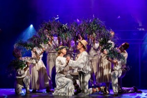 Taču vairāknāciju melnās acis pēc kontrastu principa jau nākamajā numurā tiek pārvērstas par latviešu romantizēti debeszilajām - asprātīgi un ironiski veidotu muzikāli horeogrāfisko etīdi ar ziedošu pļavu un „cīruļiem”, kuru fonā divi latviski mīlnieki (Liene Gāliņa un Egils Melbārdis) idilliskā pastorālē sola neaizmirst „Tās acis, tās acis…” .