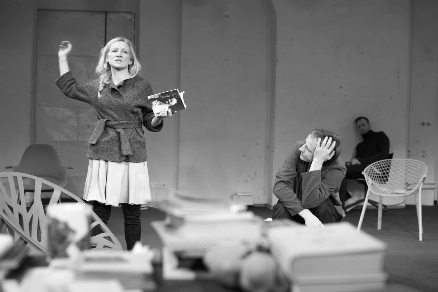 Guna Zariņa, Kaspars Znotiņš, Ivars Krasts JRT izrādē „Dzeja” // Foto – Jānis Deinats