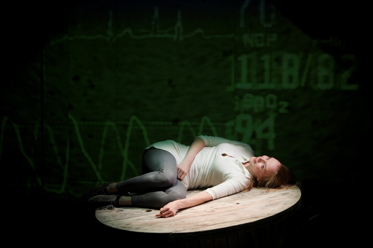 Elita Kļaviņa izrādē „Stum, stum” // Foto – Ansis Starks