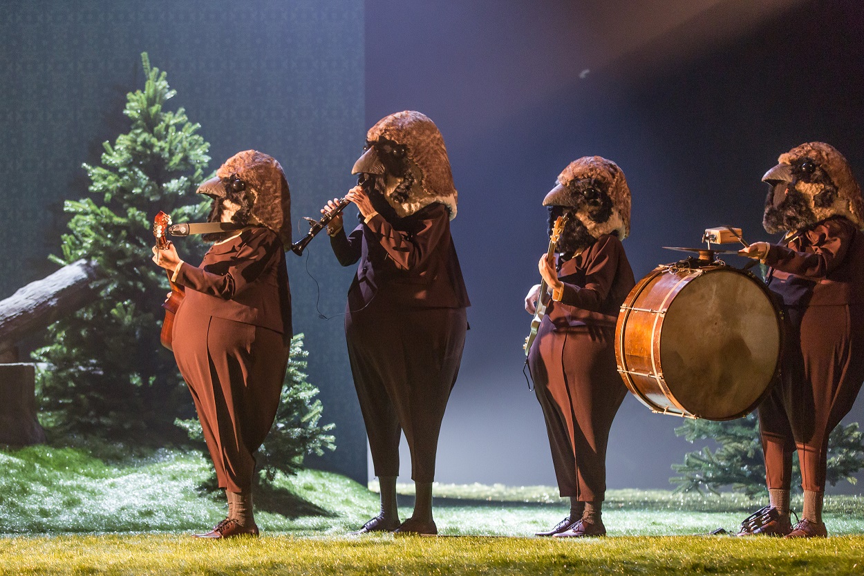 Skats no Nacionālā teātra izrādes "Sarkangalvīte un vilks" (mūzika: Edgars Mākens) // Foto – Gunārs Janaitis