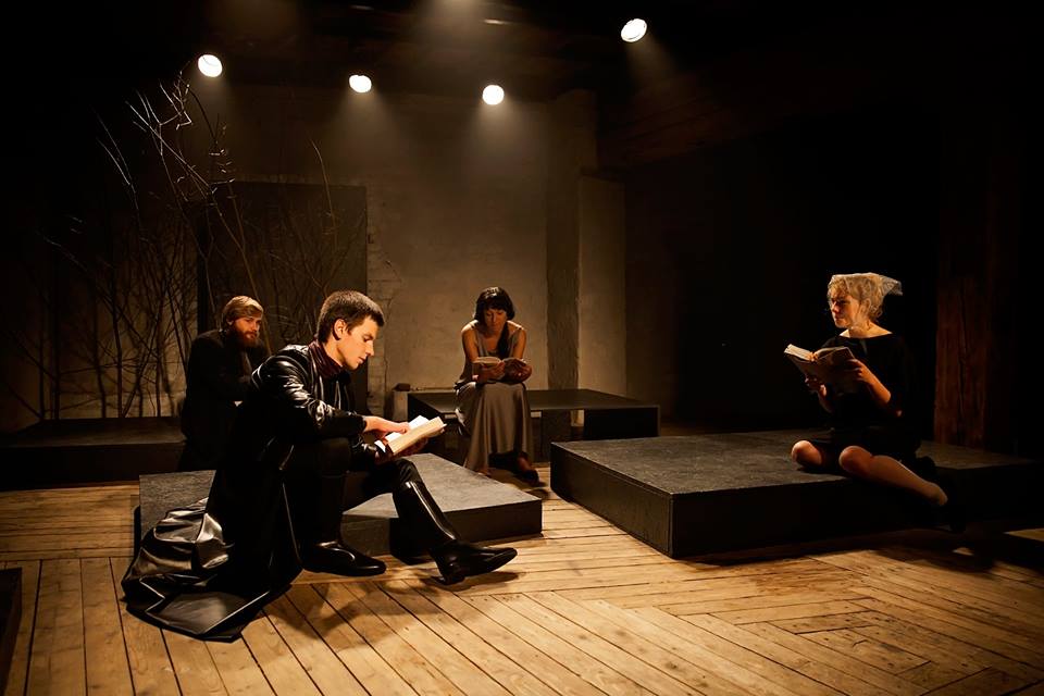 Ap lasīšanas procesu kā centrālo asi būvēta izrādes kopējā struktūrā. Aktieri spēles telpā sastopas, lai kolektīvi lasītu un izdzīvotu Skalbes pasaku pasauli. Izrādes, kuras pievēršas lasīšanai kā aktam, Latvijas teātra pēdējo gadu ainā var atrast ne mazums (pirmie prātā nāk piemēri no Jaunā Rīgas teātra repertuāra – „Ledus. Kolektīva grāmatas lasīšana ar iztēles palīdzību Rīgā”, „Dzeja”, „Gaismotāji. Pēc žurnāla „Rīgas Laiks” motīviem”). Pēc līdzīgiem principiem organizēta arī Ingas Tropas iepriekšējā izrāde „Baltā grāmata”. Lasījuma veids izrādes gaitā tiek variēts – kādam no aktieriem ieņemot teicēja lomu un citiem izpildot konkrētu varoņu replikas, kā arī vairākiem aktieriem tekstu melodiski skandējot kopā, tādējādi lasīšanas procesu interpretējot kā rituālu pieredzi. Aktieris kā lasītājs ar grāmatu rokā ceļo no skatuves centra uz perifēriju, notupstas skatītāju rindu priekšā, tumsā slīgstošajā telpā ar mazu lukturīti izgaismojot grāmatas lapas. Atsevišķās izrādes epizodēs dominējošā teksta ritmizācija aizēno vārdu nozīmi, līdz ar to telpā klātesošā – vizuālā, ķermeniskā, skaniskā – pasaule kā sensora pieredze ņem pārsvaru pār Skalbes verbāli atainoto pasaku telpu. Turklāt vairākas pasakas izrādē izmantotas arī diezgan fragmentāri. Tomēr teksta reducēšana, priekšplānā izvirzot runas melodiskumu, liek vēlēties, lai aktieri kolektīvo un individuālo teksta „dziedājumu” izkoptu precīzāk.