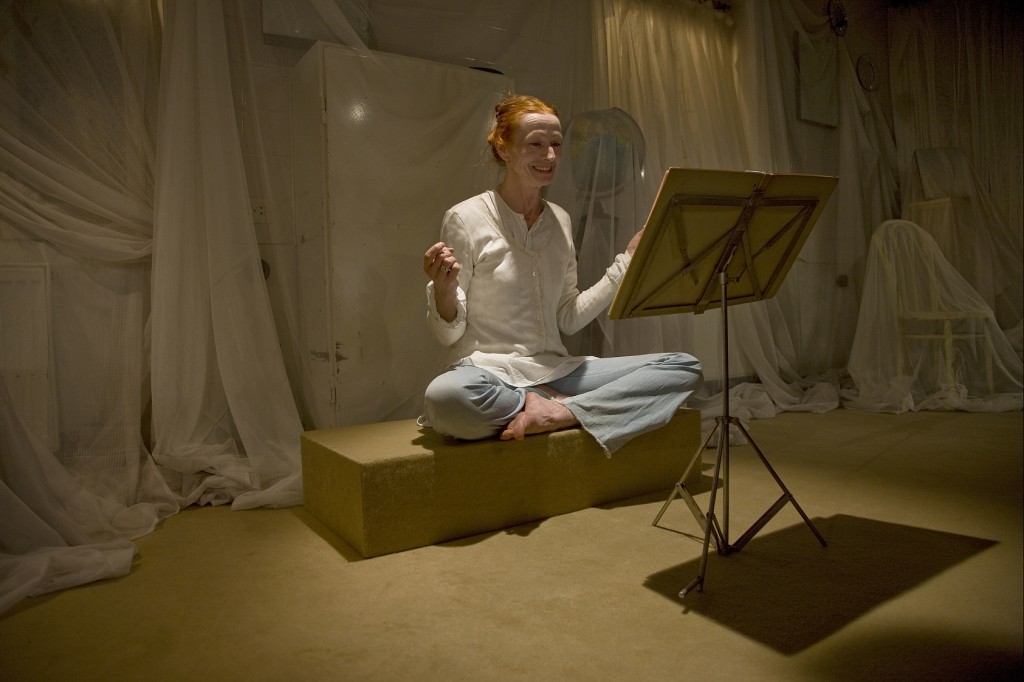 Bet viņas stāstītais ir ārkārtīgi aizraujošs! Izcilā fiziķa Deivida Boma (David Bohm, 1917-1992) idejas par hologrāfisko visumu, holokustību un implicēto jeb ieslēpto un eksplicēto jeb atklāto kārtību un kārtību hierarhijām ir kā medusmaize man, domājošai niedrei, turklāt izrādē Maija Apine tiecas izskaidrot Boma idejas vienkāršiem vārdiem un piemēriem, izslēdzot iespēju tīksmināties par notiekošo tikai šauram “iesvaidīto” lokam. Iespējams, ka Boma idejas ir seno Indijas, Ķīnas un Grieķijas natūrfilosofisko tradīciju par Visumu jeb Kosmosu atbalss. Boma nopelns ir tas, ka viņš, ilgu laiku piederēdams „oficiālajai” zinātnei, bija pietiekami drosmīgs, lai piedāvātu kolēģiem holistisku Visuma teoriju, tās centrā likdams ideju par radošu universu un par radošumu dabā un cilvēkā.
