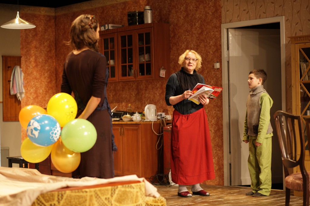 Tas, vai bērnības atmiņās rīti smaržo pēc tikko ceptām pankūkām ar mājas zemeņu ievārījumu vai atgādina apnikušo ikrīta rīvēto ābolu garšu un kārtējo tableti, kas jāiedzer, lai it kā nodzīvotu vēl vienu dienu, ir atšķirīgi diapozitīvi. To, kādi ir rīti mazajam Sašam (Artūrs Dāniels Rižijs) pie vecmāmiņas Ņinas (Indra Briķe), redz skatītājs. Homēriskā komēdijā. Homērisks esot nevaldāms, nekontrolējams. Un vai šī izrāde ir saucama par komēdiju? Tas ir visnotaļ retorisks jautājums. Smiekli ir virspusēji. Slāni pa slānim atkailinot izrādes kodolu, smiekli nenāk. Apzinoties, ka izrādes tēliem bijuši savi prototipi dzīvē, pie tam itin zināmi Krievijas kultūrtelpā.