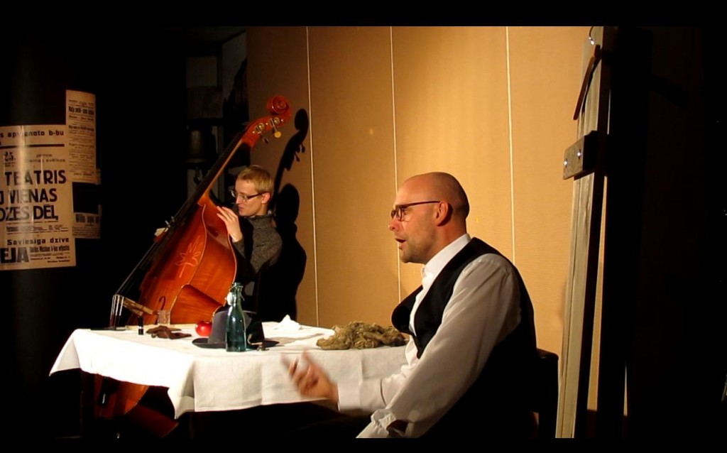 Izrādē ļoti svarīgs faktors ir pielāgotā muzeja telpa, skatuves un skatītāju zāles tuvums. Skatuve (vienā līmenī ar skatītāju sēdvietām) atrodas ekspozīcijas malā, kurai pretī nelielā puslokā izkārtotas skatītāju sēdvietas. Skatuves fonu veido brūna siena ar uzpilējušu dzeltenu krāsu, iekārtojums vienkāršs un lakonisks – galds un divi krēsli, fonā afišu stabs un veikala logs ar koka slēģiem. Tā kā afišu stabs un stiklotais logs ar tā laika kārbiņām, paciņām un pudelēm ir muzeja ekspozīcijas daļa, šie ir objekti, kas savā ziņā „savieno” skatuves daļu ar pārējo telpu. Zālē valda pustumsa, tādējādi ekspozīcija nekādā mērā nenovērš uzmanību no aktieriem. Izrādes telpa ir tieši tik personiska, dabiska (autentiskumu necenšoties tēlot), cik nepieciešams.