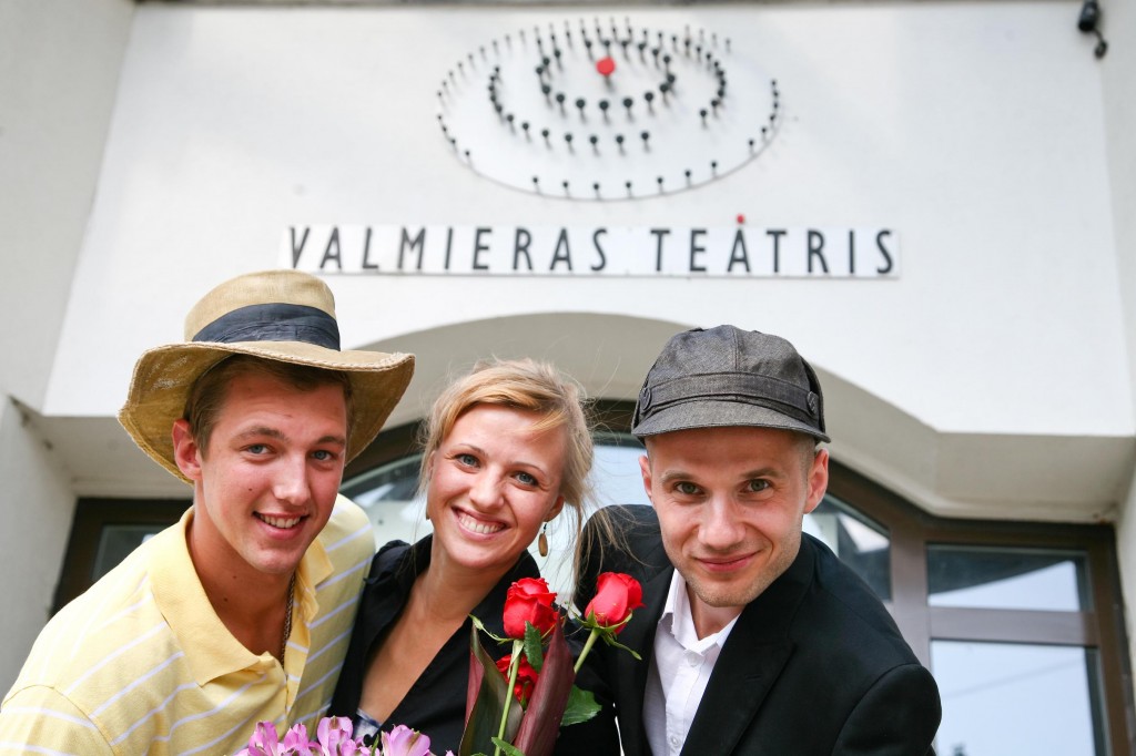 No kreisās: Rihards Jakovels, Inese Pudža un teātra galvenais mākslinieks Reinis Suhanovs