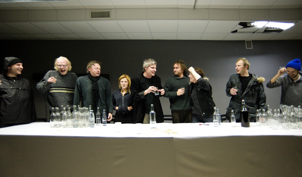 Jau ienākot Nacionālā teātra Jaunajā zālē, kurā tiek izrādīta Lietuvas teātrī iepriekšējāsezonā par labāko atzītā izrāde, raisās asociācijas ar Alvja Hermaņa daiļradi – kā „Zilākalna Martā” aktieri sēž pie gara galda pretī skatītājiem gluži kā Leonardo da Vinči „Svētajā vakarēdienā”. Izrāde pretendē pilnībā nojaukt ceturto sienu, tostarp radot sajūtu, ka tu kā skatītājs ieņem vietu galda pretējā pusē. Tomēr, lai arī man izdevās ieņemt tiešām lielisku vietu, ne mirkli neradās sajūta, ka esmu šī pasākuma dalībniece (ne telpas izkārtojums, ne dažādu aktieru darbība – tieša uzruna atsevišķiem skatītājiem, piedāvājums sadzert „tu” brālības, dzērienu dalīšana – nelika justies kā procesa aktīvai dalībniecei). Atcerējos iepriekšējā vakarā „Quizoola!” vienu no tēmām – apceri par to, kā Vakarēdiena notikumā kāds skicētājs/ notikuma iemūžinātājs palūdzis apustuļus nosēsties vienā galda pusē, lai vieglāk būtu to iemūžināt (no sērijas „chees” – smaidi objektīvam). Lietuviešu aktieri ir tiešām lieliski. Pēc izrādes vēl vairākas dienas diskutēju ar dažādiem cilvēkiem – kas lietuviešu aktierus tik ļoti atšķir no latviešu kolēģiem? Ne jau kvalitātes ziņā, bet intonācijā un atšķirīgā tehnikā. Latviešu aktieriem vairāk raksturīga psiholoģiskā skola, kam dažādās intensitātes pakāpēs pieslēdzas paralēlā valoda – dažādas žestu un mīmikas zīmes. Tikmēr lietuvieši ir it kā siltāki, apaļāki, vienotā rituāla kultūrā auguši. Iespējams, liela ietekme katoliskajai reliģijai pretstatā luterāņu salīdzinoši verbāli sausajai tradīcijai, iespējams, lietuviešus vairāk ietekmējusi poļu teātra skola pretstatā Latvijai tuvākajai krievu skolai.