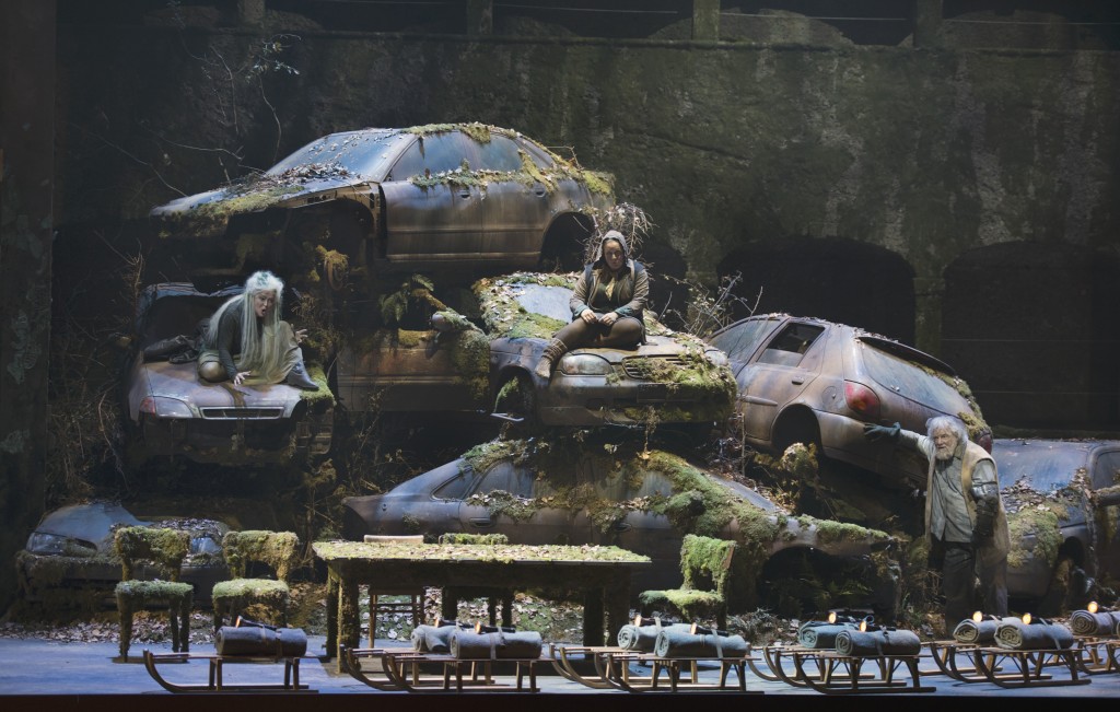 Taču tie, kas Gaveina iestudējumā cerēja ieraudzīt romantisku stāstu – kaut modernizētā versijā – par karaļa Artura Apaļā galda bruņinieka un Svētā Grāla meklētāja Gaveina cīņu ar Zaļo bruņinieku, vīlās. Pēc operas pirmās daļas noskatīšanās vīlusies jutos arī es, taču pavisam citu iemeslu dēļ. Bet uzklausīsim vispirms režisoru, kurš stāsta par savu Bērtvisla darba izpratni un interpretācijas pamatprincipiem izrādes programmas grāmatiņā: „Lai gan darbība sākas karaļa Artura galmā Ziemassvētku laikā, vadošais noskaņojums nav priekpilns, bet apokaliptisks. Cilvēkiem, kas te sapulcējušies, atlikušas vien atmiņas par pagātnes varoņdarbiem. (..) Tas, kas sākas kā pasaka, drīz izvēršas šausmu ceļojumā bruņiniekam, kas pieņem Zaļā bruņinieka izaicinājumu. Par spīti tam, ka darbība notiek tālā senatnē, atsauces/ norādes uz šodienu un kritisks skats uz nākotni tur ir nenoliedzami, un to nevar ignorēt. Un esmu pārliecināts, ka bija nepieciešams to pilnībā atspoguļot uz skatuves. Konflikts starp kristietību un pagānismu, kas ir operas un libreta centrā, var tikt paplašināts līdz Civilizācijas un Dabas sadursmei. Zalcburgas iestudējumā mēs sevi atradām tuvu dabai un zinātniskajai fantastikai, kad, sekojot ekoloģiskai katastrofai, cilvēciskā dzīve ir gandrīz izdzisusi. Daba, ieskaitot cilvēka dabu, ir atgriezusies pie savām saknēm. Ķermenis vēl atceras pazaudētos instinktus, primitīvi motīvi uzrodas un zemapziņas līmenī sāk kontrolēt lietu norisi. (..) Tas, kas notiek ar zemi, kad modernā civilizācija sagrūst un tiek iznīcināta, tika iztēlots pirms dažiem gadiem izdomātā dokumentālo filmu sērijā Pasaule bez cilvēkiem (World Without Men), kas mums deva vielu pārdomām.”
