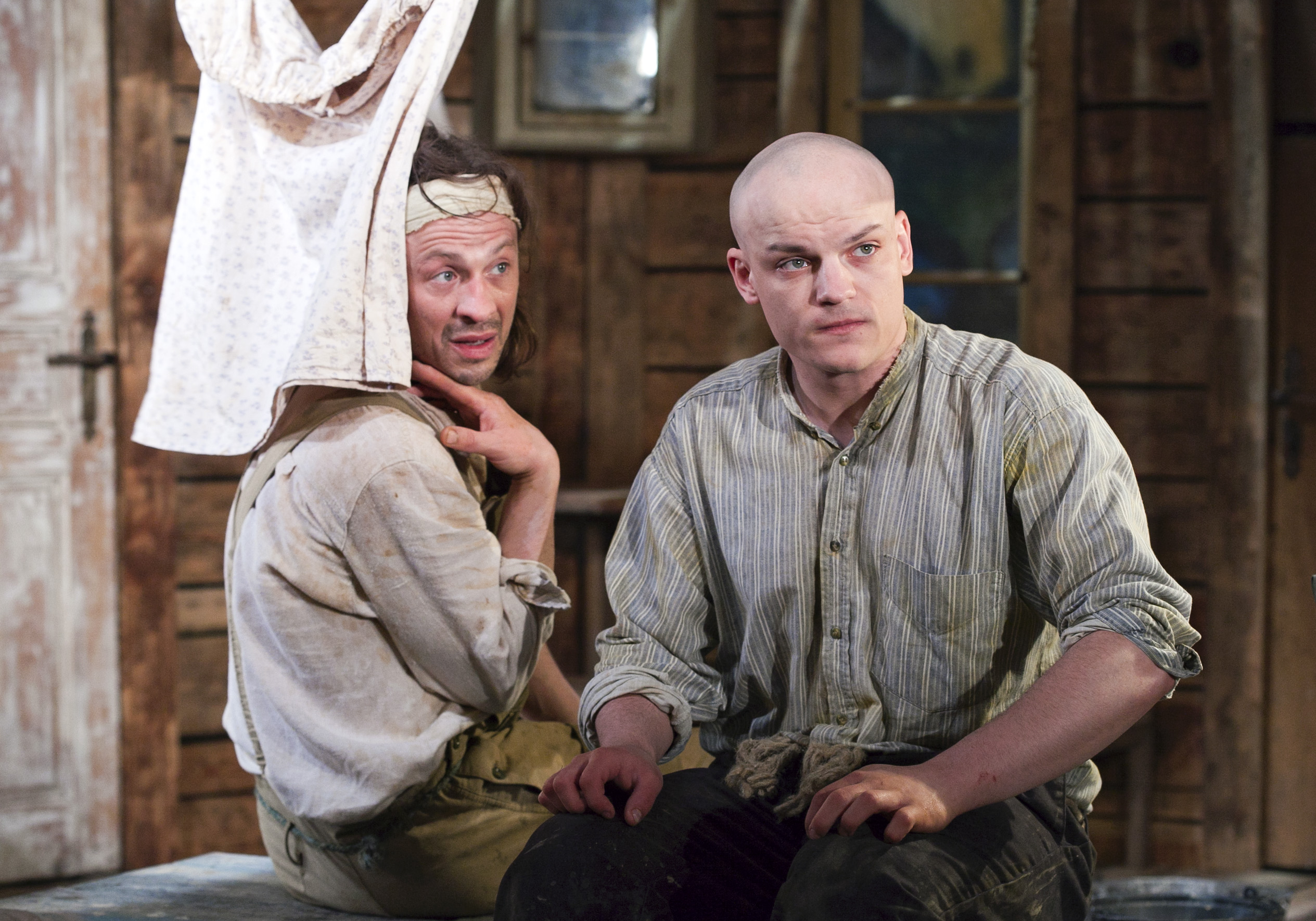 Egons Dombrovskis – Miķelis, Kaspars Kārkliņš – Jasis izrādē "Laimesciema podniekdarbnīca" (2011) // Foto – Ziedonis Safronovs