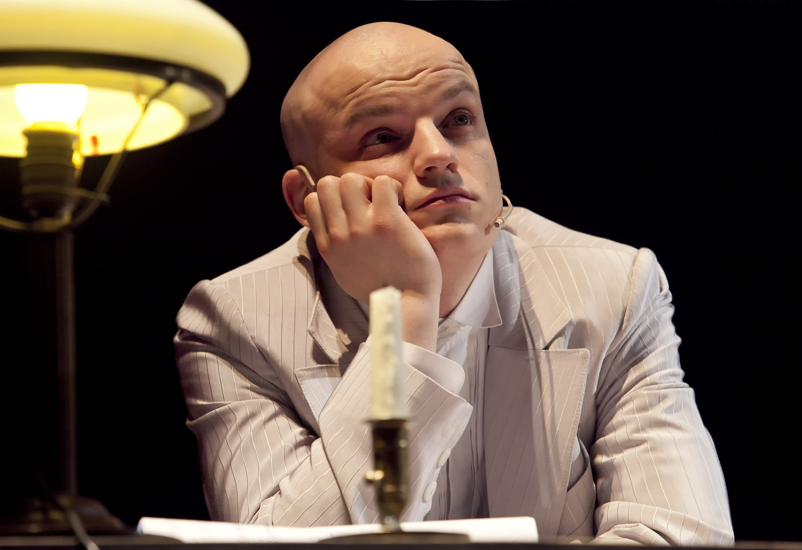 Kaspars Kārkliņš Aleksandra Čaka lomā izrādē "Spēlē, Spēlmani!" (2011) // Foto – Ziedonis Safronovs