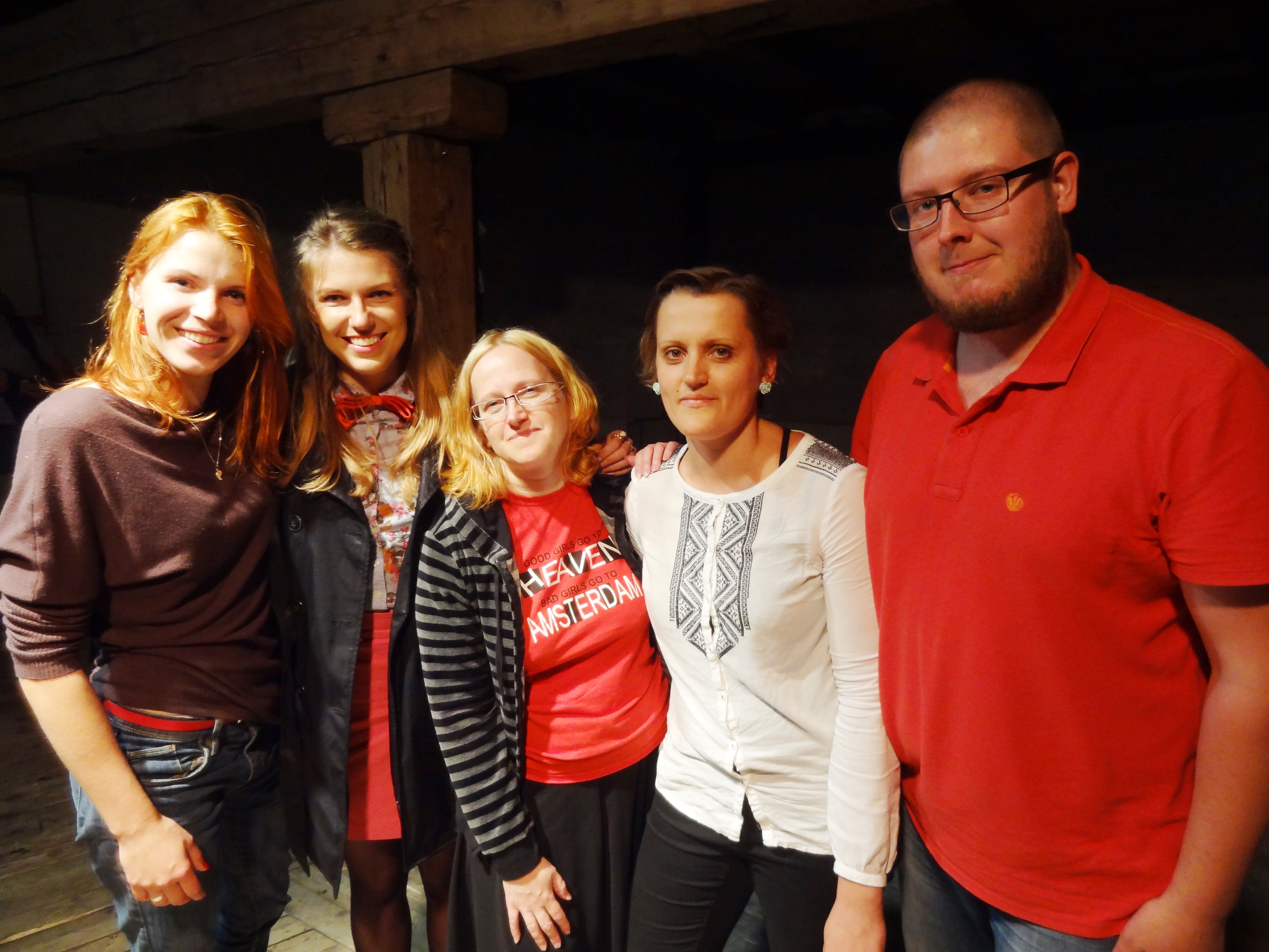 Lasījumu finālisti, no kreisās – Una Nākuma, Justīne Kļava, Aiva Birbele, Aleksandra Lielās un Raibīs. // Foto – Lauris Gundars