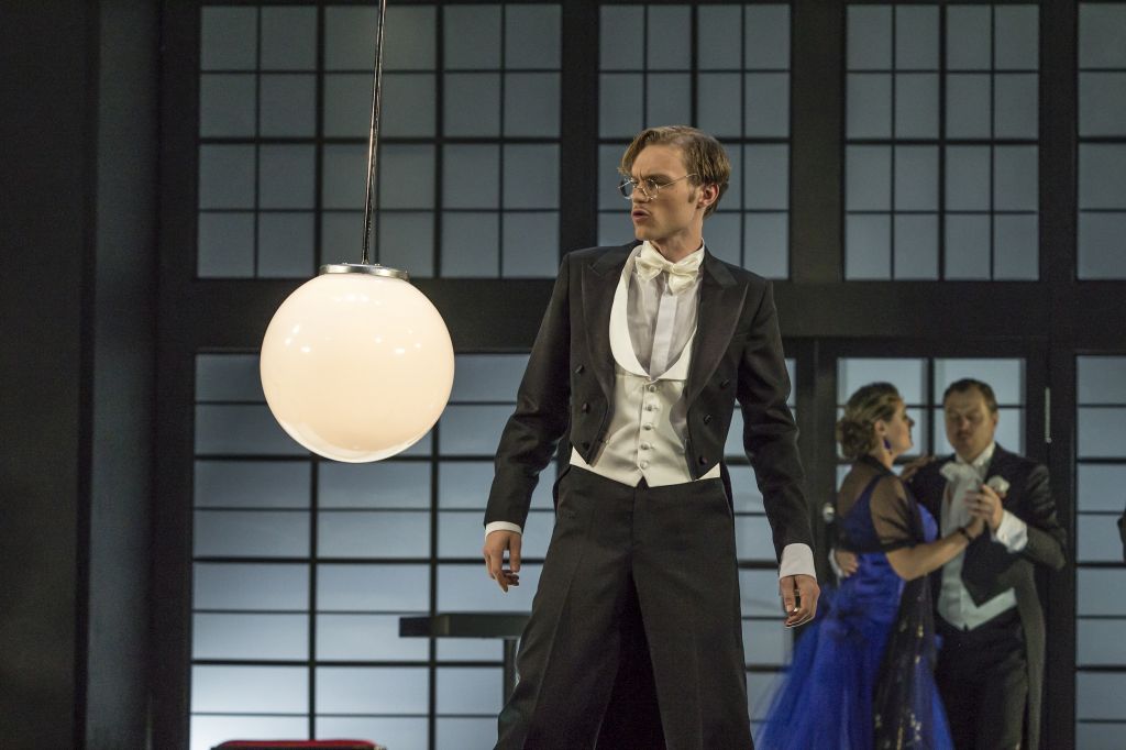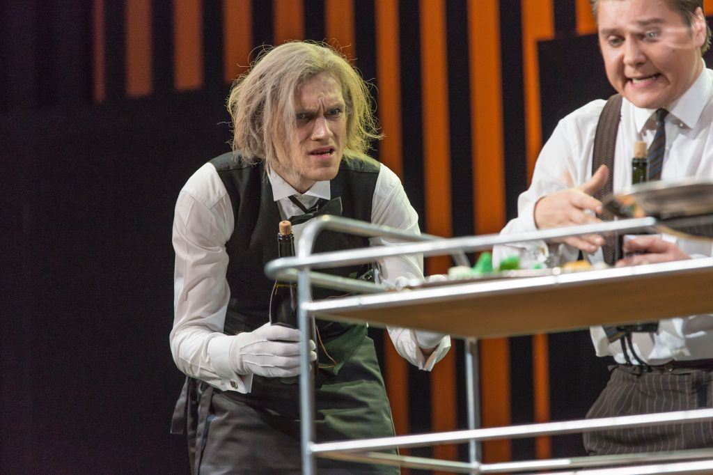 Kaspars Aniņš Alfija lomā izrādē "Divu kungu kalps. Anno 1963" (2013) // Foto – Gunārs Janaitis